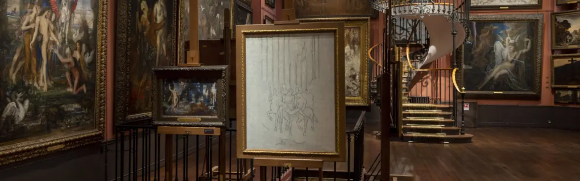 In April 1895, Moreau asked architect Albert Lafon to transform the family home into a museum. The apartments on the second floor were fitted out as a small sentimental museum, where family portraits and works donated by his friends Théodore Chassériau, Eugène Fromentin or Edgar Degas were hung. The second and third floors become large, north-facing glass-fronted studios, designed to offer as much space as possible. A majestic spiral staircase links them together. Several hundred paintings and watercolors, as well as thousands of drawings, can now be exhibited.